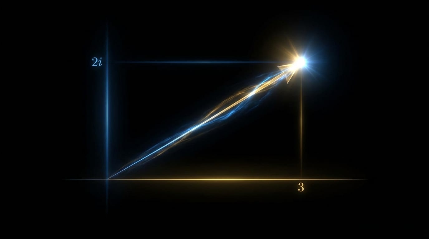 Cualquier número complejo como 3 + 2i es simplemente un punto en este plano. Caminas 3 unidades a la derecha, luego 2 unidades hacia arriba. Ahí está tu número.